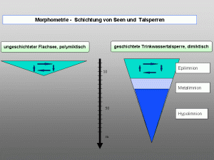 Tiefe Seen der gemäßigten Breiten sind im Sommer immer stabil thermisch gechichtet, während dies in flachen Gewässern nur während sehr warmer Wetterlagen vorübergehend der Fall ist.